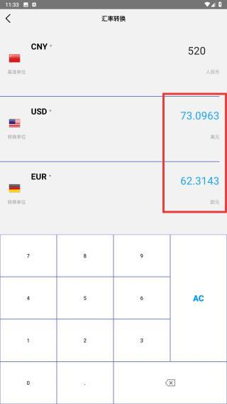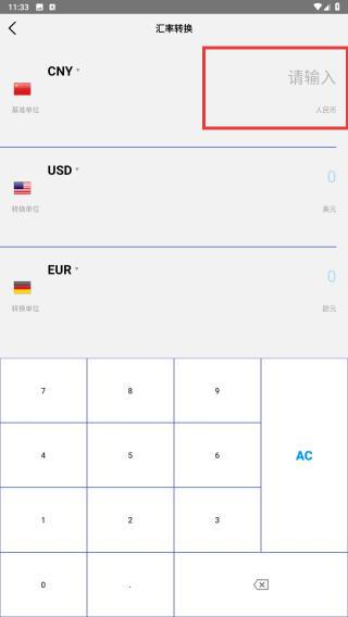 3、在匯率換算的頁面內(nèi),可在此區(qū)域內(nèi)輸入金額數(shù)字。