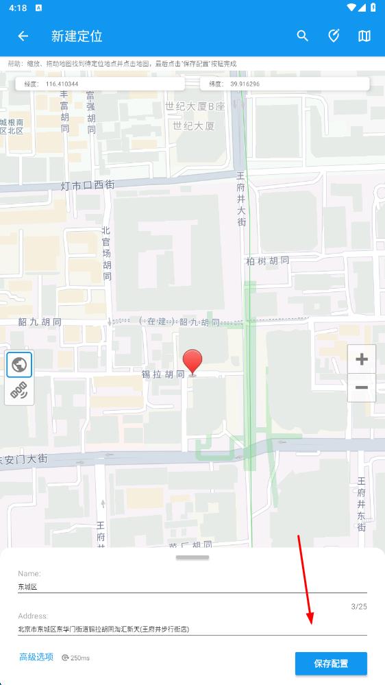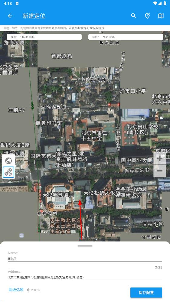 2、進入軟件,點擊新建定位,在指定經(jīng)緯度界面輸入經(jīng)度緯度,確認坐標系等信息后點擊確定 。