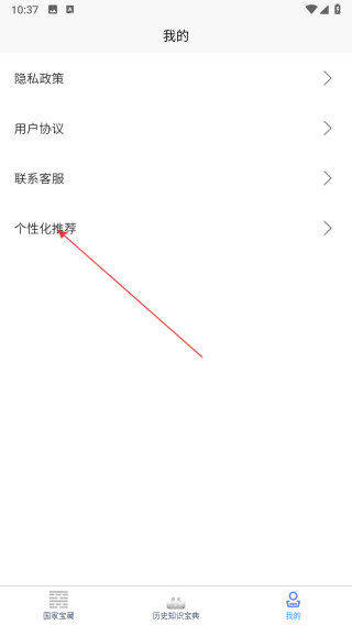 2、在我的頁(yè)面中,點(diǎn)擊個(gè)性化推薦選項(xiàng),進(jìn)入個(gè)性化推送開(kāi)關(guān)頁(yè)面。