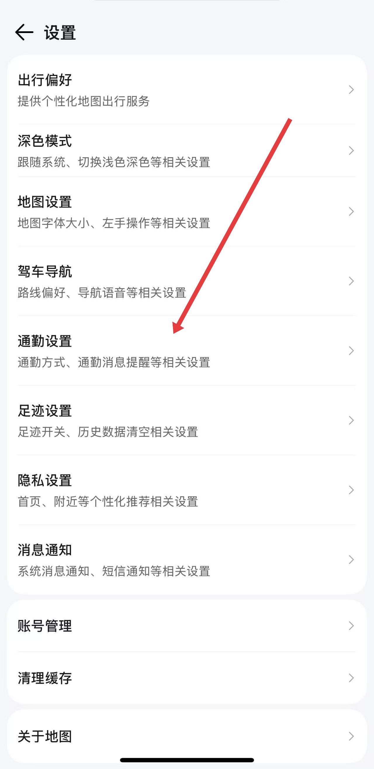 2、在設(shè)置界面中,找到并點擊通勤設(shè)置選項,進(jìn)入通勤相關(guān)設(shè)置頁面。