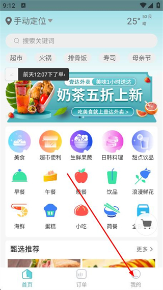 1、打開壹達外賣app,點擊底部導航欄最右側我的。