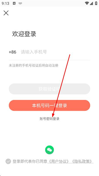 3、進入登錄頁面,找到并點擊下方賬號密碼登錄選項。