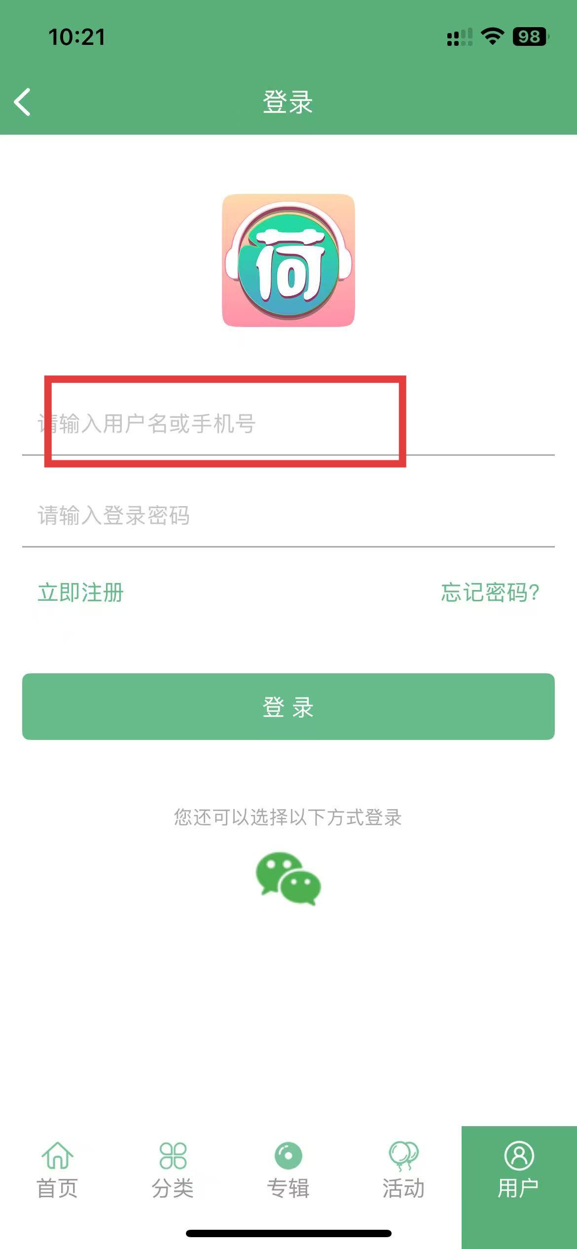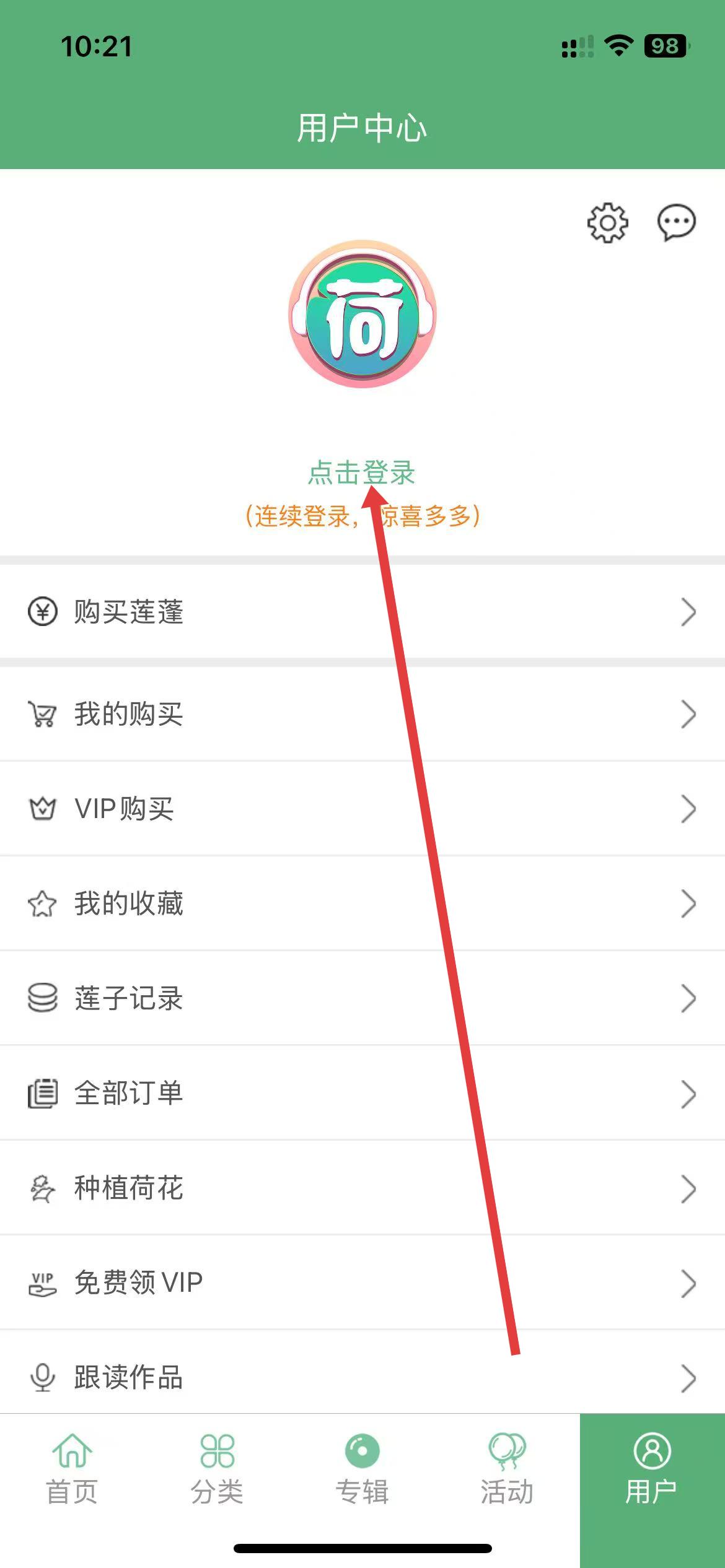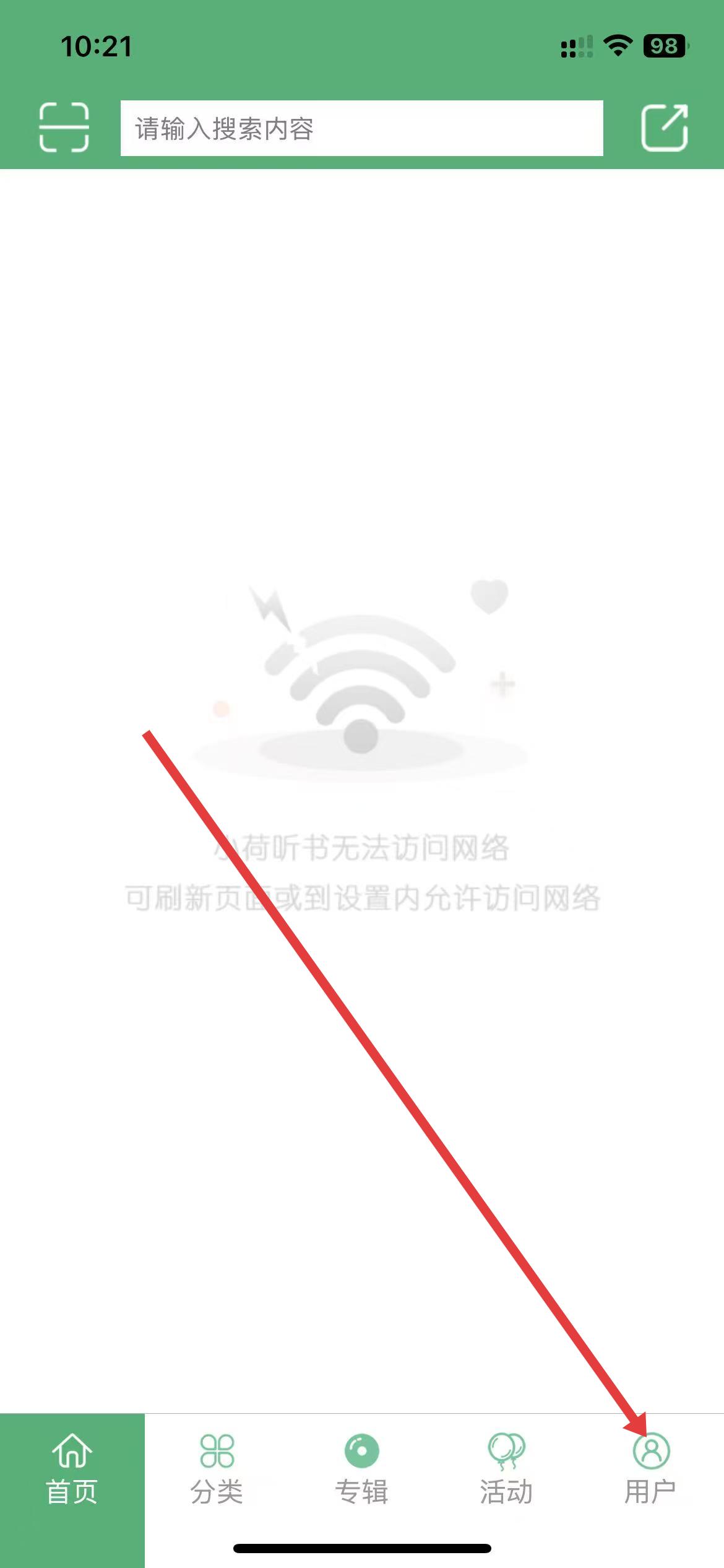 1、打開小荷聽書app,點擊底部導(dǎo)航欄的用戶選項。