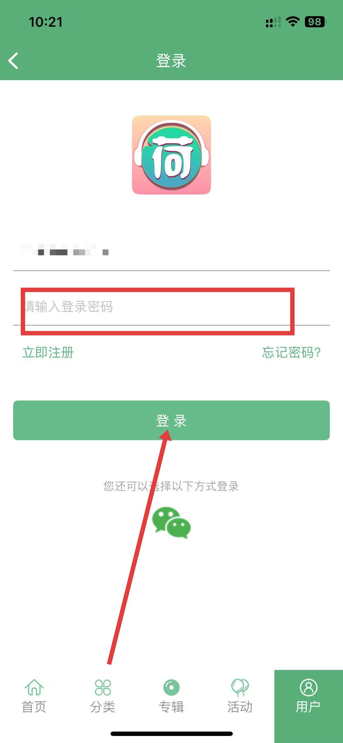 3、在登錄頁面的輸入框中,輸入需要登錄的手機號碼。