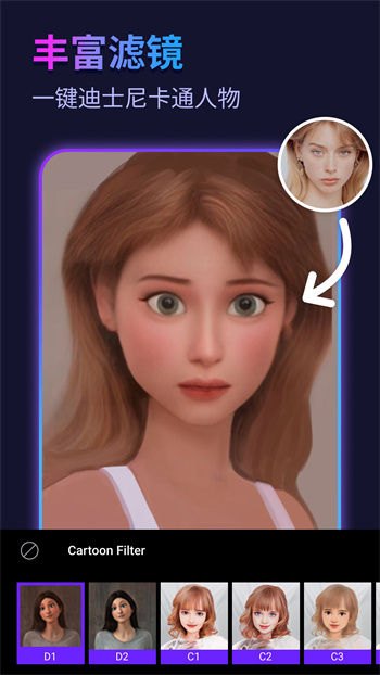 1、風(fēng)格多樣,支持變老相機(jī)、童顏相機(jī)、前世今生、一鍵漫畫(huà)臉等特效