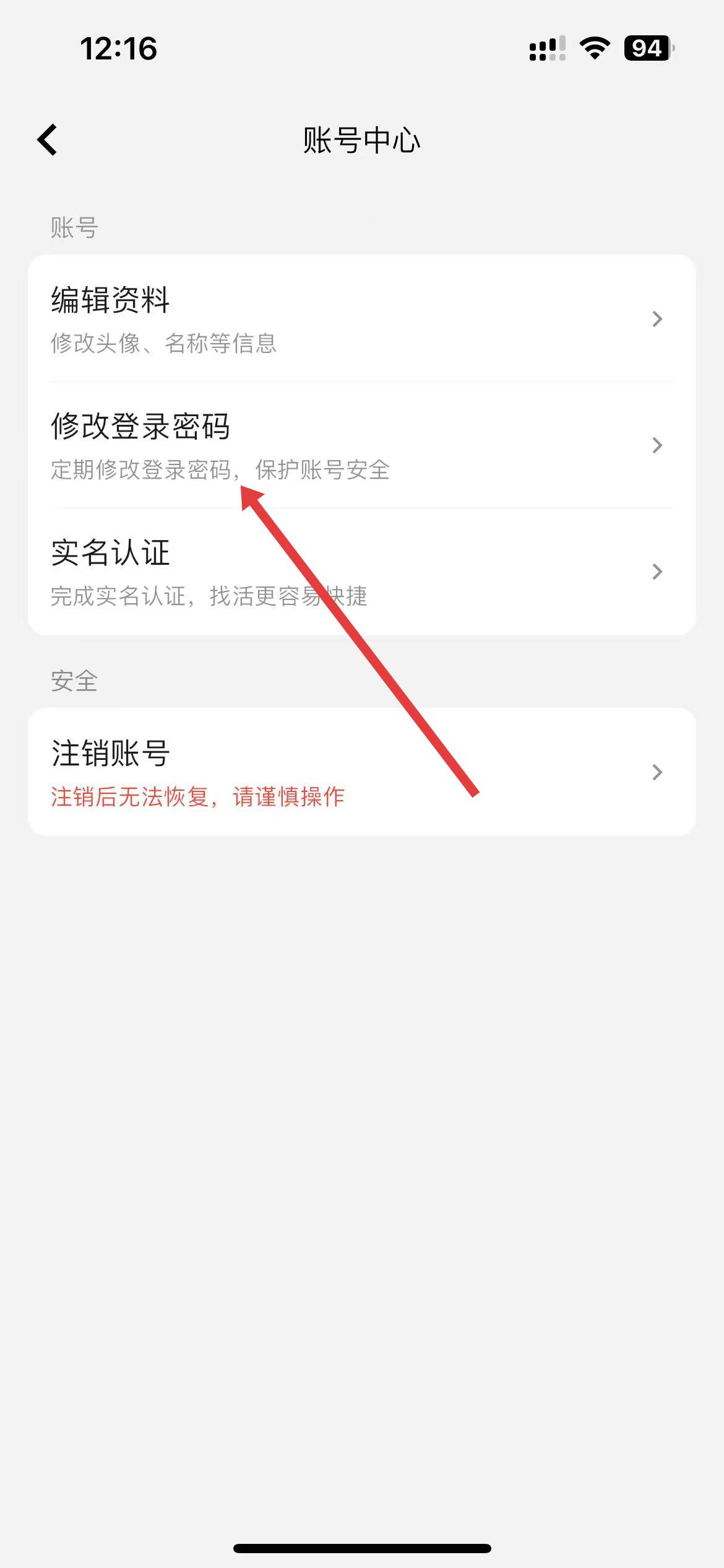 4、在賬號(hào)中心里,選擇修改登錄密碼的選項(xiàng),比如修改密碼頁(yè)面。