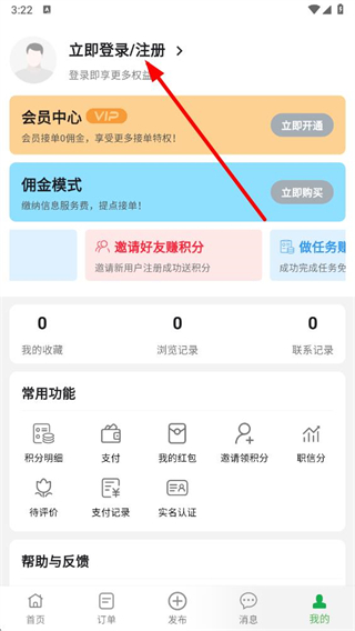 2、在個(gè)人頁(yè)面中,點(diǎn)擊立即登錄注冊(cè)選項(xiàng)。