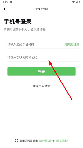 4、在手機(jī)號(hào)登錄頁(yè)面,輸入手機(jī)號(hào)碼和驗(yàn)證碼,同意相關(guān)協(xié)議后點(diǎn)擊登錄,即可完成注冊(cè)賬號(hào)操作。