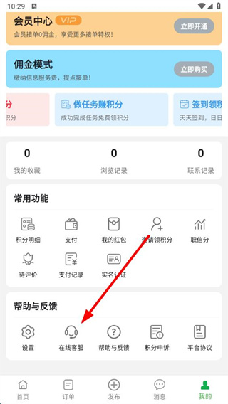 2、在我的頁(yè)面中,找到在線客服選項(xiàng)并點(diǎn)擊。