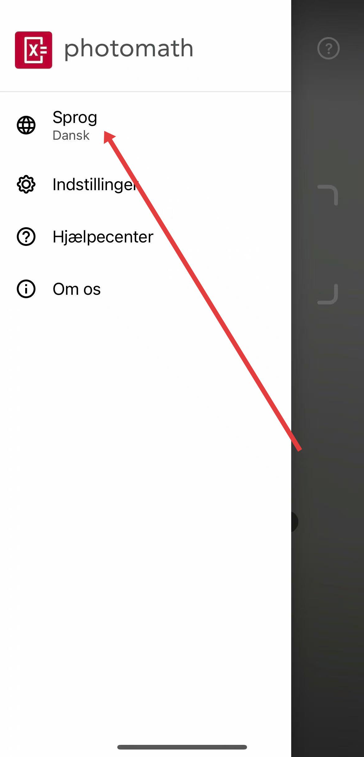 1、打開Photomath應(yīng)用后,打開側(cè)邊欄,找到側(cè)邊欄里的Sprog選項并點擊,進(jìn)入語言設(shè)置頁面。
