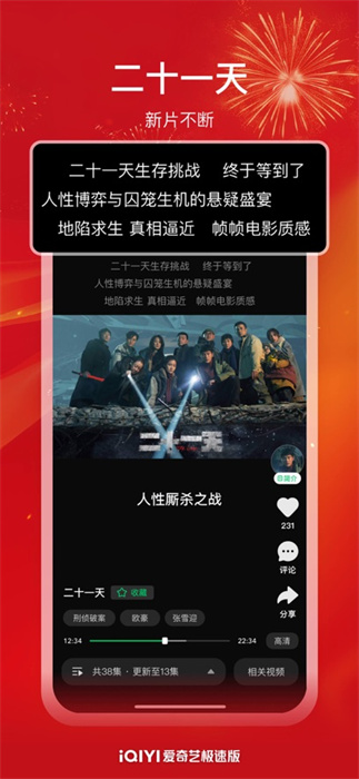 愛奇藝極速版ios版匯集了全網(wǎng)最新的的視頻,還擁有海量的影視資源,用戶可以根據(jù)自己的需求進行查找觀看喜歡的影視,在這里用戶還可以為自己喜歡的明星點贊并且參與相關(guān)話題進行討論,更有多種短視頻可以隨時在線觀看,讓你欲罷不能!有感興趣的用戶快來下載體驗吧!