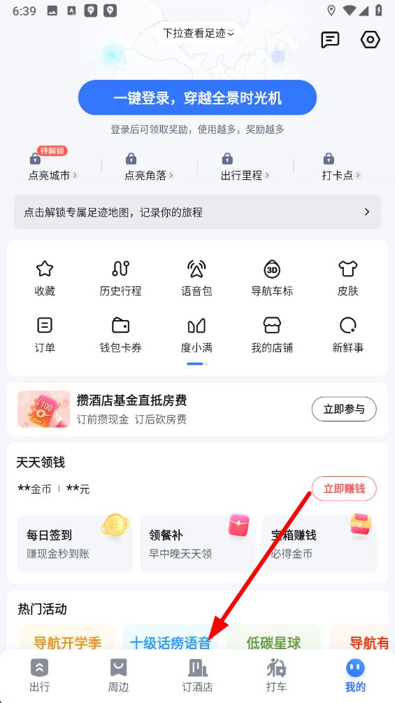 1、打開百度地圖應(yīng)用,點擊底部導(dǎo)航欄中的訂酒店選項,進入相關(guān)旅行服務(wù)界面。