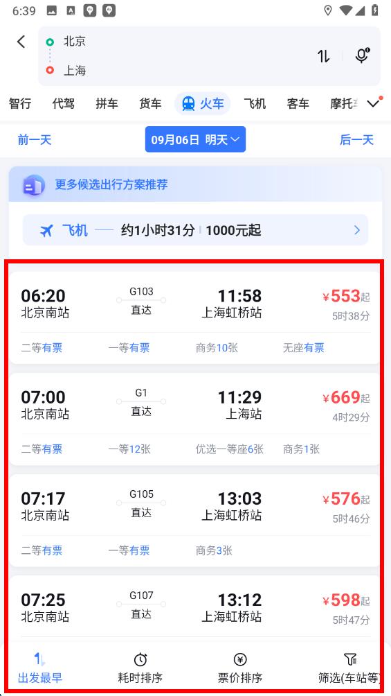 4、在查詢結(jié)果頁面,查看列出的火車車次信息,包括出發(fā)時間、到達時間、票價、余票數(shù)量等,選擇合適的車次后,按照頁面提示完成購票操作即可。