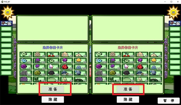 5、需要選擇雙方的植物和僵尸陣容,雙方都可以選擇植物還有僵尸,植物可以防御,僵尸可以進(jìn)攻,選擇好陣容之后就可以點(diǎn)擊【準(zhǔn)備】;
