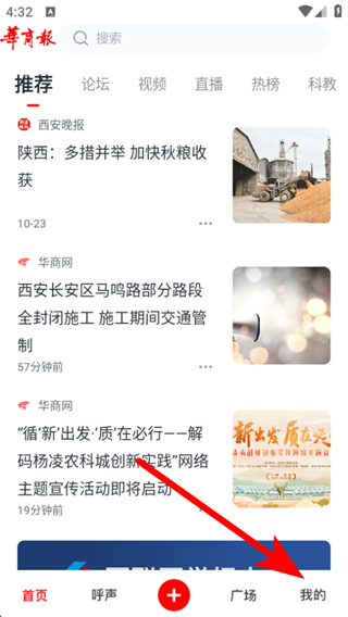 1、打開華商頭條APP首頁(yè),點(diǎn)擊底部我的,進(jìn)入個(gè)人的頁(yè)面。