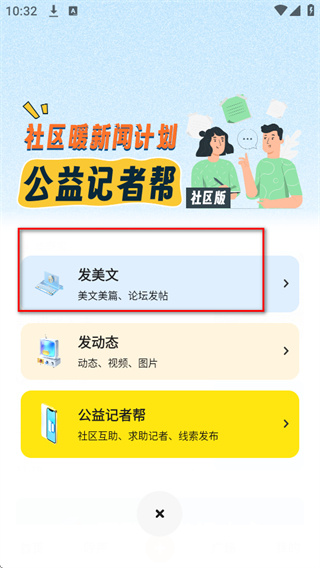 2、在彈出的選項(xiàng)中點(diǎn)擊發(fā)美文選項(xiàng),進(jìn)入美文發(fā)布頁(yè)面。