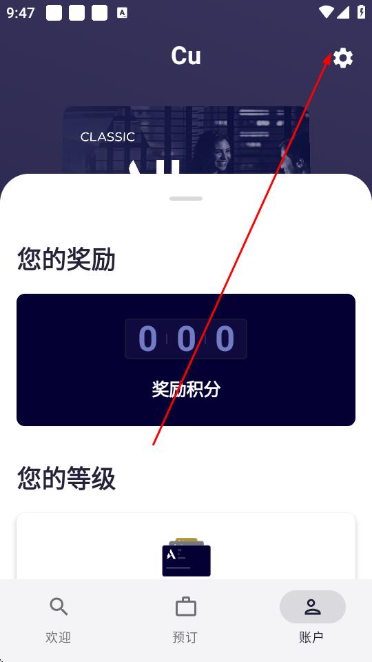 2、在賬戶頁面,點擊右上角的設置圖標。