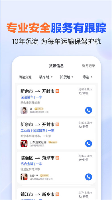 4、在線即可聯(lián)系貨主和司機,支持電話撥打、語音或視頻聊天方式。