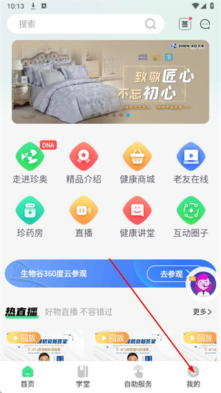 1、打開珍奧保健在線APP,點(diǎn)擊導(dǎo)航欄中的我的。