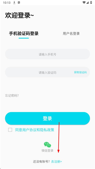 2、在登錄頁面,點(diǎn)擊還沒有賬號(hào)?去注冊(cè)。