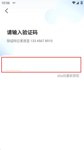 4、進入驗證碼輸入頁面,等待系統(tǒng)向填寫的手機號發(fā)送驗證碼,在輸入框中填寫收到的內(nèi)容。