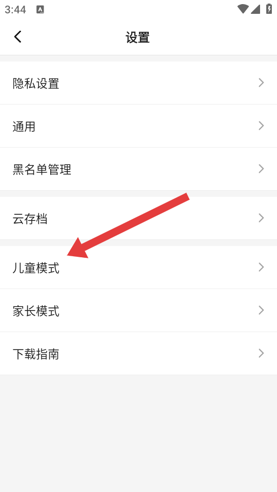 3、在設(shè)置的頁(yè)面,點(diǎn)擊兒童模式選項(xiàng),進(jìn)入設(shè)置兒童/青少年模式頁(yè)面。