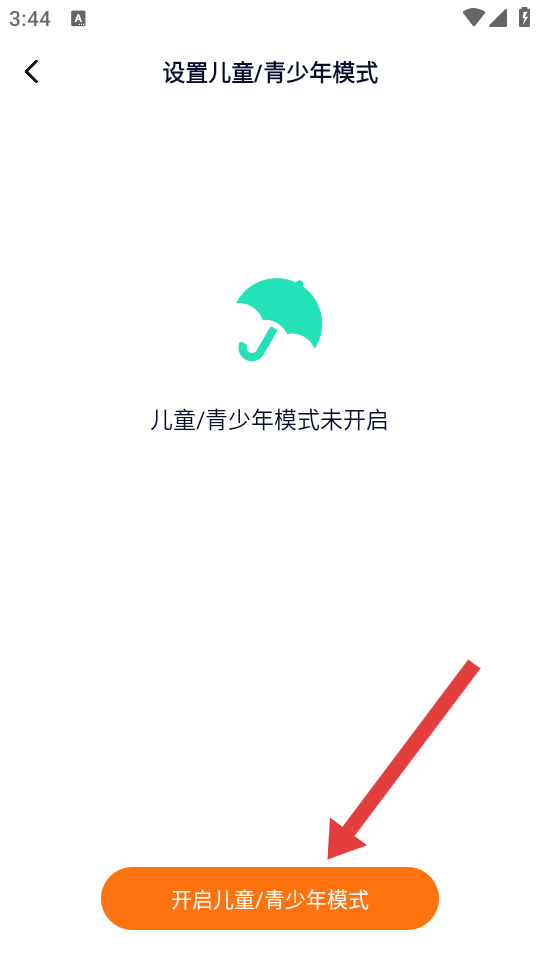 4、在設(shè)置兒童/青少年模式頁(yè)面,點(diǎn)擊開(kāi)啟兒童/青少年模式按鈕,完成模式開(kāi)啟。