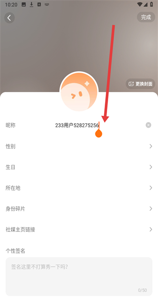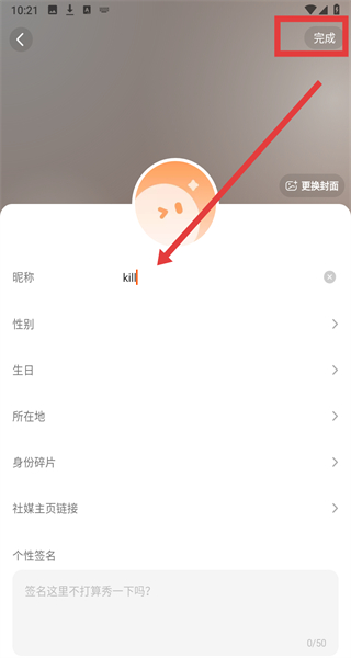 4、在昵稱輸入框中編輯好新昵稱后,點(diǎn)擊完成按鈕,即可完成修改昵稱操作。