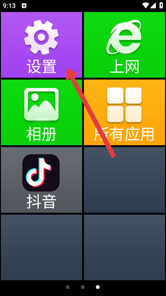 1、在如意老人桌面主界面,點擊紫色背景的設(shè)置圖標(biāo),進入設(shè)置的頁面。