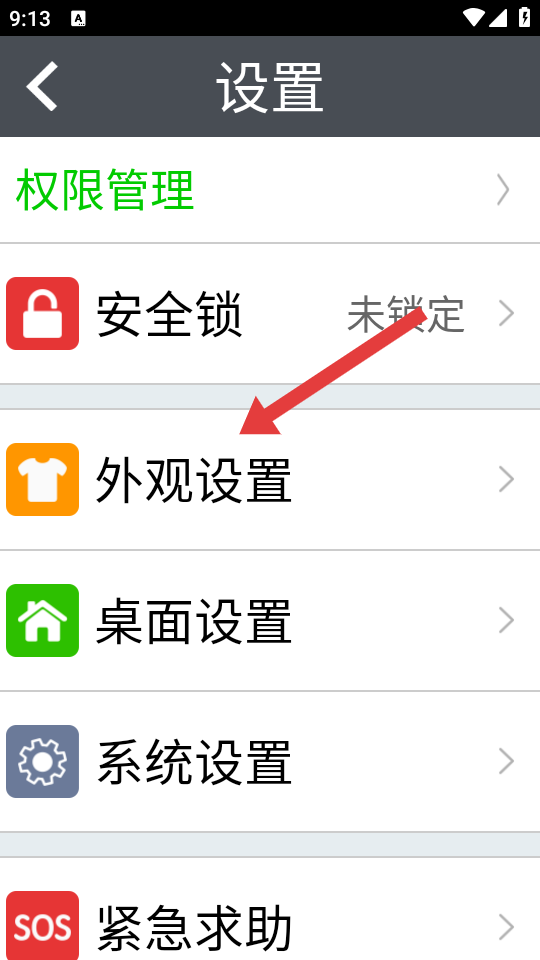 2、在設(shè)置的頁面中,點擊外觀設(shè)置的選項,進入外觀設(shè)置的界面。