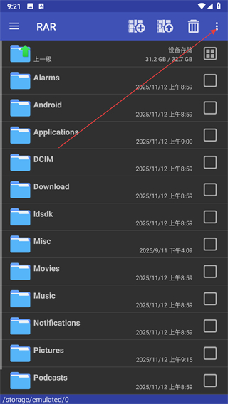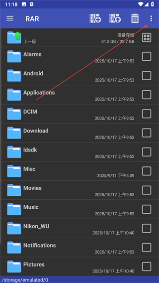 1、打開RAR應用,點擊界面右上角的三點圖標。