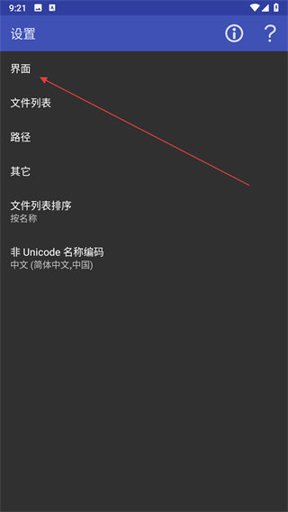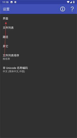 3、在設置頁面里,點擊界面選項,進入相關的設置界面。