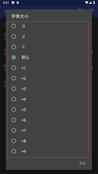 5、在字體大小彈窗中,可選擇不同字體大小。