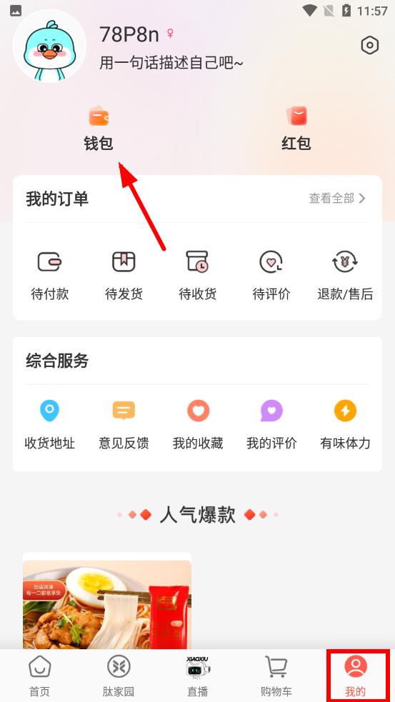 1、打開有味生活app,點擊底部我的圖標,在頁面中找到并點擊錢包選項,進入錢包管理界面。
