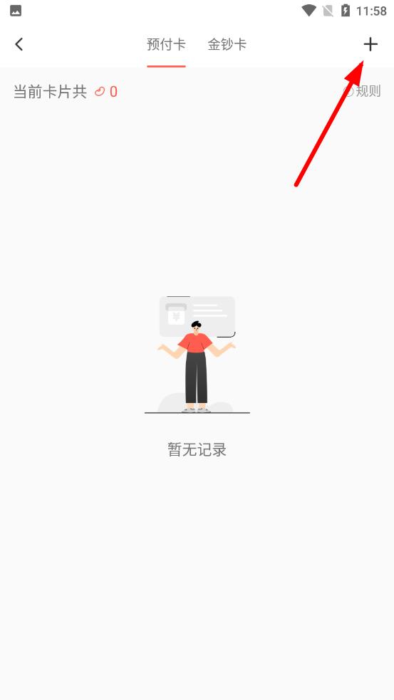 3、進入卡包界面,點擊界面右上角的符號,按照提示輸入卡片相關信息,完成在有味生活app上的卡片綁定操作。