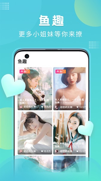 魚樂秀,每天都有新驚喜,帥哥美女,只要有你;要看不慣,就給你換;有趣的直播內(nèi)容,甜蜜的交友互動。各式各樣的視頻內(nèi)容,24小時不間斷的精彩直播。集熱門、魚趣、關(guān)注等功能與一體,不一樣的體驗。