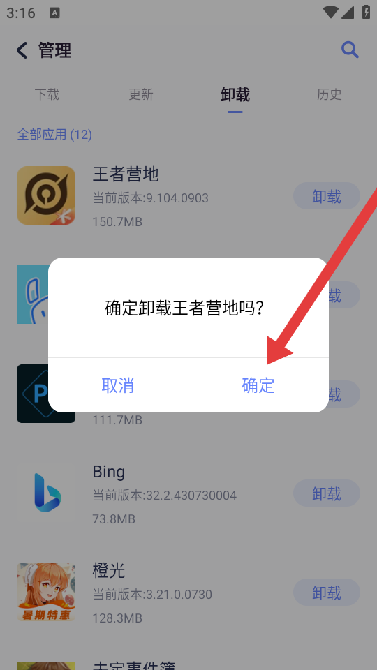 4、在確定卸載XXX嗎的彈窗中,點擊確定按鈕,完成軟件卸載。