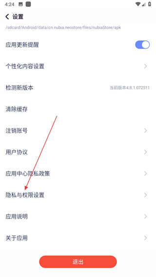 2、進入設(shè)置頁面后,點擊隱私與權(quán)限設(shè)置選項,進入該設(shè)置界面。
