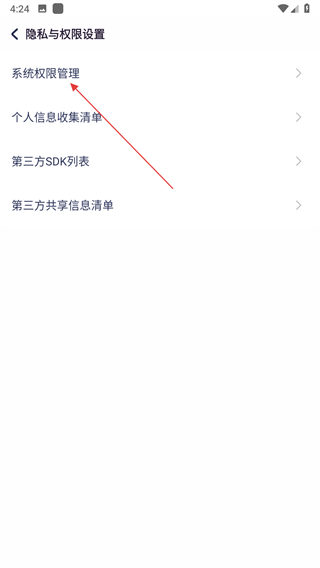 3、在隱私與權(quán)限設(shè)置頁面,點擊系統(tǒng)權(quán)限管理選項。