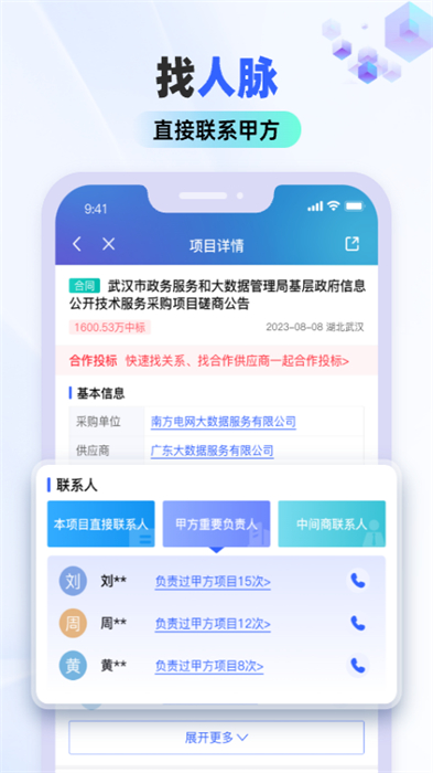 2、能夠快速查詢各種招標(biāo)中標(biāo),項(xiàng)目信息等,還能進(jìn)行詳細(xì)的分析和推演;