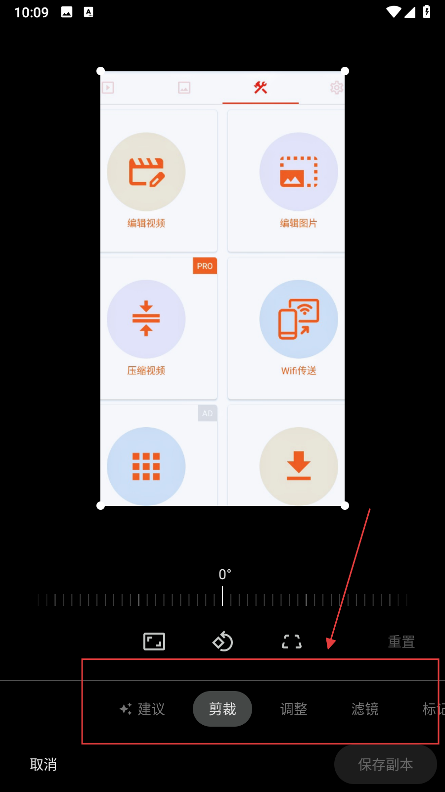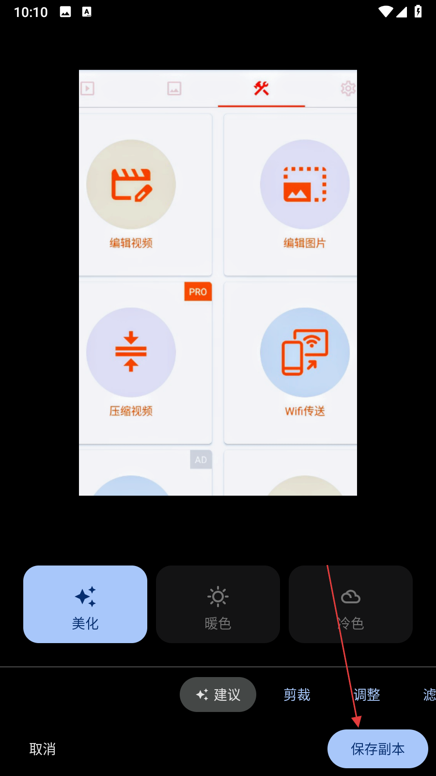 4、編輯完成后,點擊界面右下角的保存副本按鈕,將編輯后的照片以副本形式保存到相冊中,原照片不會被覆蓋。