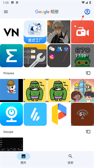 1、打開谷歌相冊APP,點擊個人圖標(biāo)。