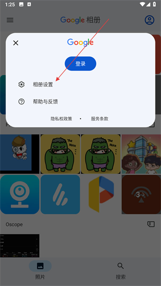 2、在彈出的菜單中,點擊相冊設(shè)置選項。