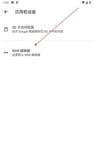 4、在應(yīng)用和設(shè)備頁面,點擊RAW編輯器。