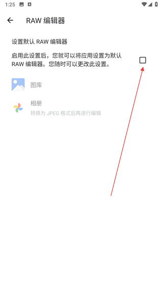 5、勾選設(shè)置默認RAW編輯器的方框即可。