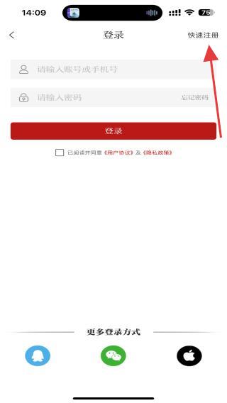 3、在登錄的界面內(nèi),點(diǎn)擊右上方快速注冊的按鈕。