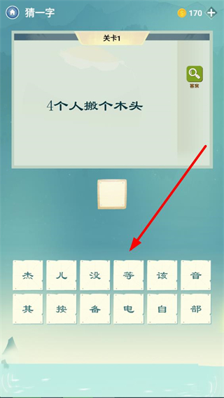 3、仔細(xì)閱讀字謎題目,分析文字構(gòu)成與含義,在下方的漢字選項(xiàng)中,選擇符合字謎推理結(jié)果的字。