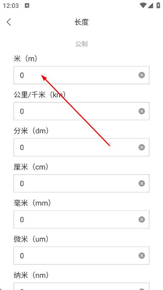 3、在長度換算頁面中,輸入其中一個(gè)單位的數(shù)值。