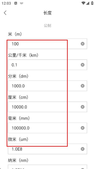 4、系統(tǒng)會自動計(jì)算,并顯示出其他長度單位對應(yīng)的換算結(jié)果。