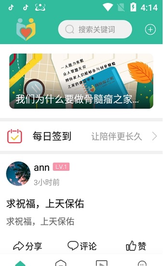 骨髓瘤之家app是骨髓瘤家人的線上交流社區(qū),方便剛確診骨髓瘤的家人更有效率的互通有無。骨髓瘤之家app里沒有能為你實(shí)時(shí)答疑解惑的大咖,更沒有駐群坐診的醫(yī)生,有的只是每一位用心學(xué)習(xí)、只說自己了解經(jīng)歷過的真實(shí)信息的骨髓瘤家人,我們不追求所謂活躍度,只希望能通過家人間的內(nèi)在支持,多分享經(jīng)驗(yàn)讓更多人少走彎路。有家人陪伴,就是長(zhǎng)久的幸福。